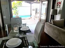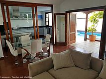 Sehr schönes Haus mit Garten und Pool in Puerto del Carmen. Die Entfernung zum Strand beträgt ca. 6 Minuten Fußweg. Das Haus mit 160 qm Wohnfläche ist für 4 - 6 Personen wunderbar ausgestattet. Es besitzt 3 Schlafzimmer, Wohnzimmer mit TV / Radio / WIFI, 3 Bäder, Pool, Sauna und Jacuzzi auf der Terrasse.