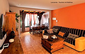 Die Küche ist voll ausgestattet und das Wohnzimmer verfügt über deutsches TV und WIFI.