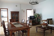 Diese Wohnung verfügt über ein geräumiges Wohnzimmer mit voll ausgestatteter Küche und 2 Schlafzimmer mit Doppelbett. Es gibt noch ein zweites separates kleines Schlafzimmer. Ein Schlafzimmer ist mit einem Doppelbett ausgestattet und das zweite Schlafzimmer mit zwei Einzelbetten. Von der großen Terrasse mit Liegestühlen hat man einen schönen Blick auf den Garten. Diese Wohnung befindet sich 5 Minuten Autofahrt oberhalb von Puerto del Carmen in dem Ort Tias.