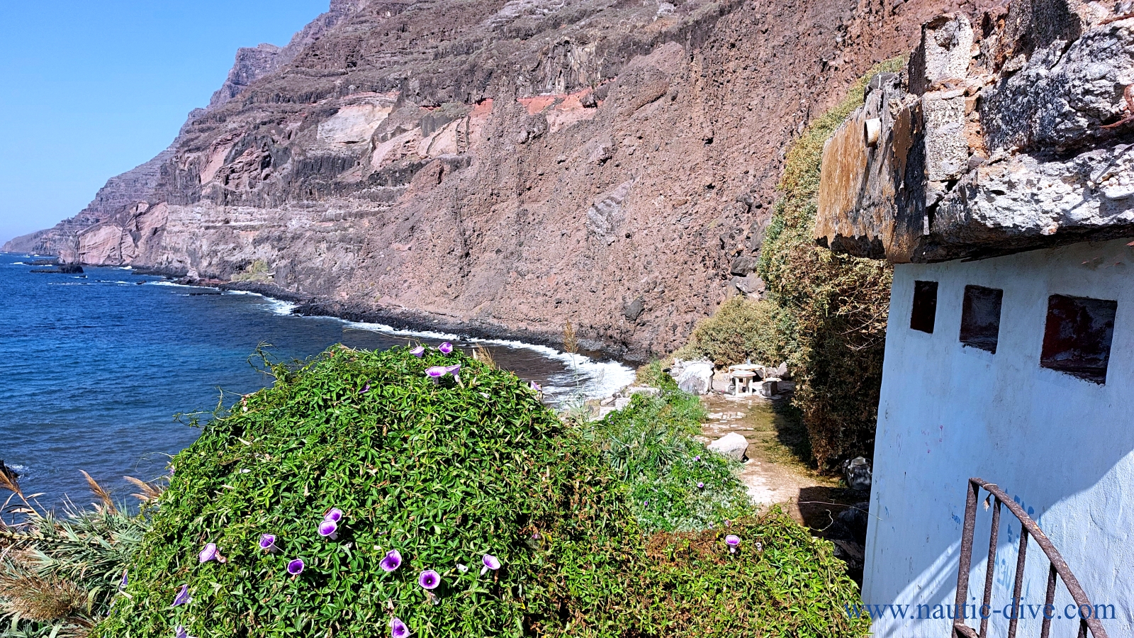 „La Casa del Agua / Haus des Wassers“ am Risco Famara (Steilwand von Famara) ist eine Sehenswürdigkeit auf Lanzarote. An der 600 Meter Hohen Felswand, die sich von dem Ort Famara bis nach Orzola (nördlichster Punkt von Lanzarote) erstreckt, gibt es 3 Wasserquellen. Vor hunderten von Jahren waren diese Quellen bereits den Seefahrern bekannt und tankten hier für die Fahrt über den Atlantik ihre Wasservorräte auf. Diese Wasserquellen führen 12 Monate im Jahr Trinkwasser, welches noch in den 60 er Jahren für die Versorgung von „Caleta de Famara“ zur Verfügung stand. Die Reste der alten Trinkwasserleitungen, die bis zu dem 6 Kilometer entfernten Ort „Caleta de Famara“ führen sind noch bis heute zu sehen. Lanzarote verfügt über kein Grundwasser! Dieses natürliche Wasser ist das Wasser der Wolken, die in der Nacht an dieser imposanten Felswand hängen und abtropfen. An drei unterschiedlichen Stellen stritt das Wasser in Form einer Quelle aus der Felswand heraus und dieses je nach Wetterlage auch manchmal wie ein Wasserfall.